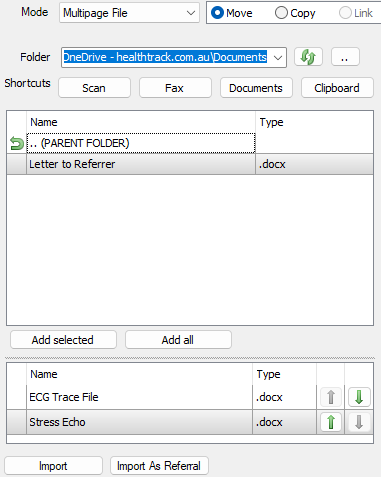Use this mode to combine several individual files such as separate scanned pages, into a single document in the patient's record.