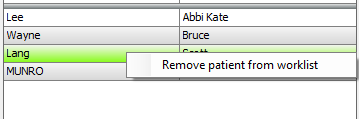 To remove patients from the Worklist, right-click the patient and select "Remove patient from worklist".