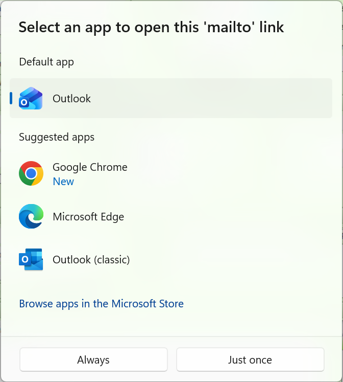 Send Emailbutton. - A pop-up will display for selection of the preferred mail app.