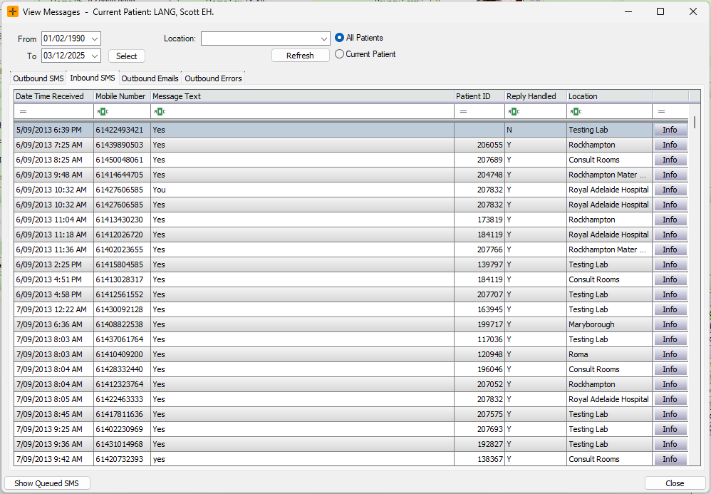 How to view messages sent to a patient
