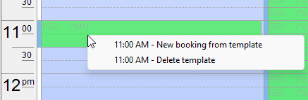 - Double-click the time slot in the diary where the template should start. A template is created immediately - it displays the same colour as a booking but is transparent, with no patient details.