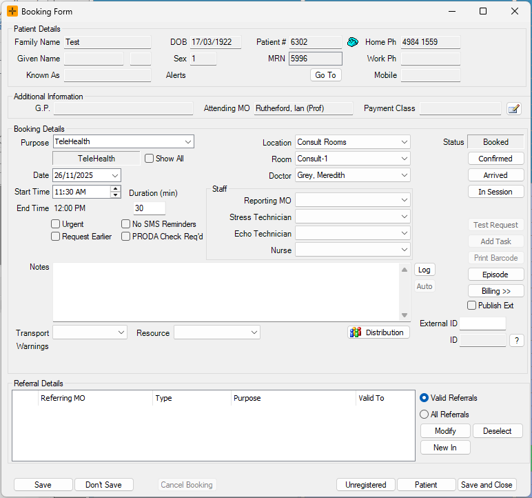 - There are two ways to open the Booking Form for a particular patient:
