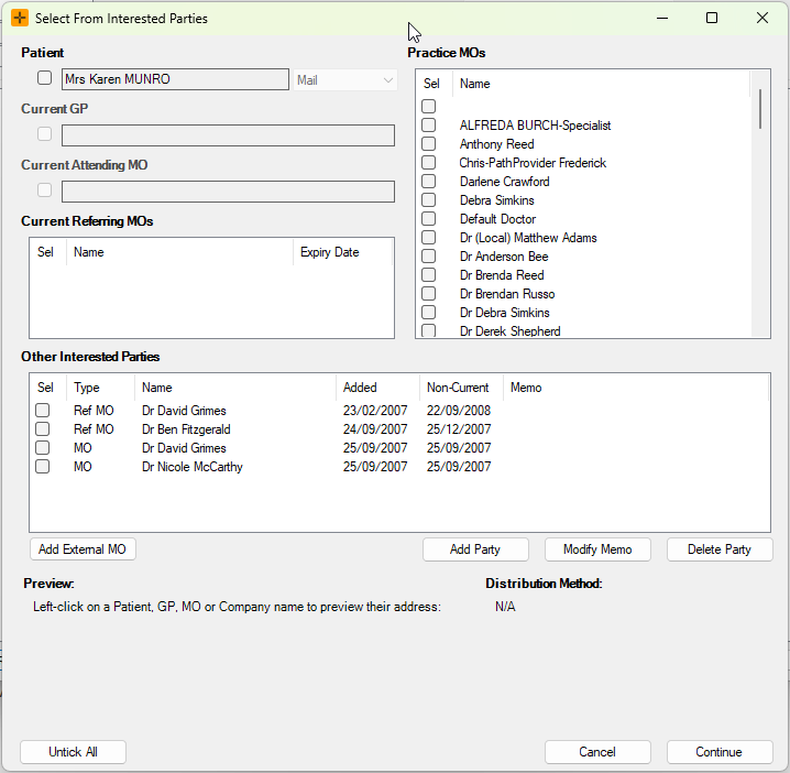 The patient's GP and referring MO will always be included as default recipients on the Distribution List.