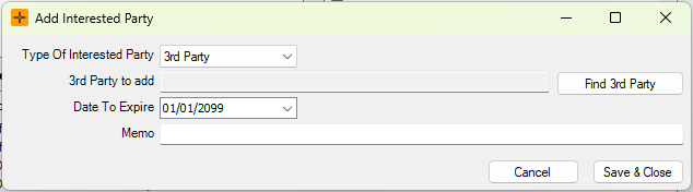- In the 'Select From Interested Parties' screen you can select any interested parties listed.