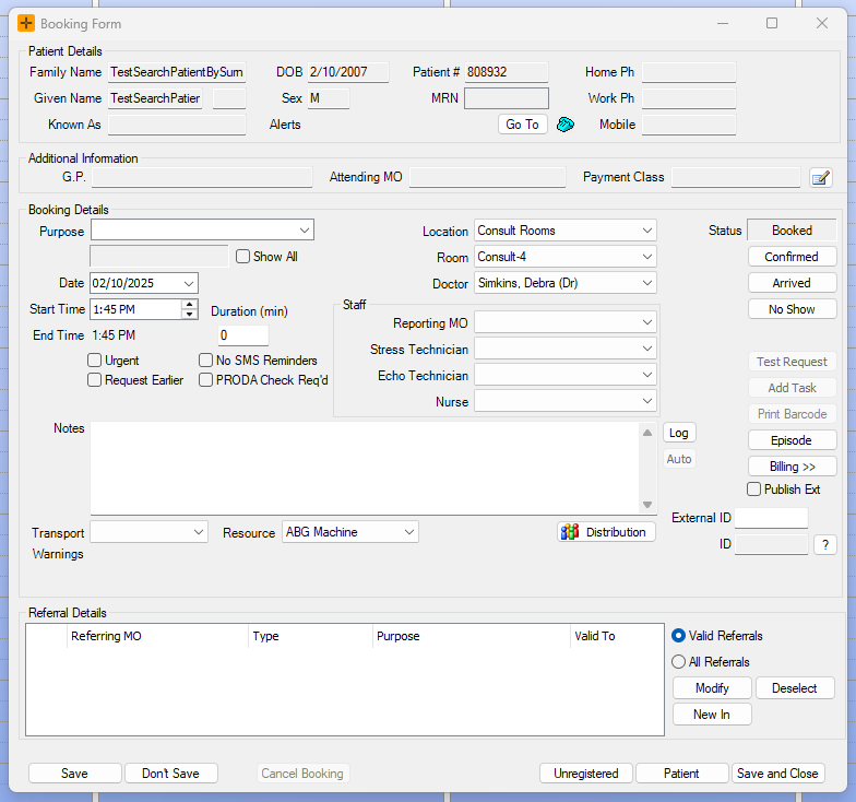 - Referred To - Select either an individual doctor or a location (cannot be both).
