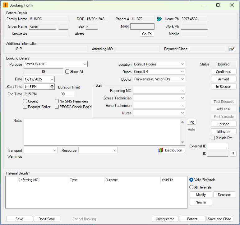 - Create a booking for the patient.