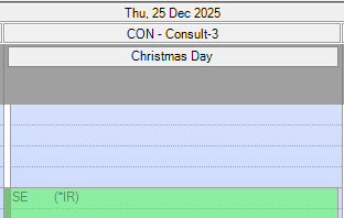 Once a public holiday is added, it will appear at the top of the day in the diary with the public holiday name.
