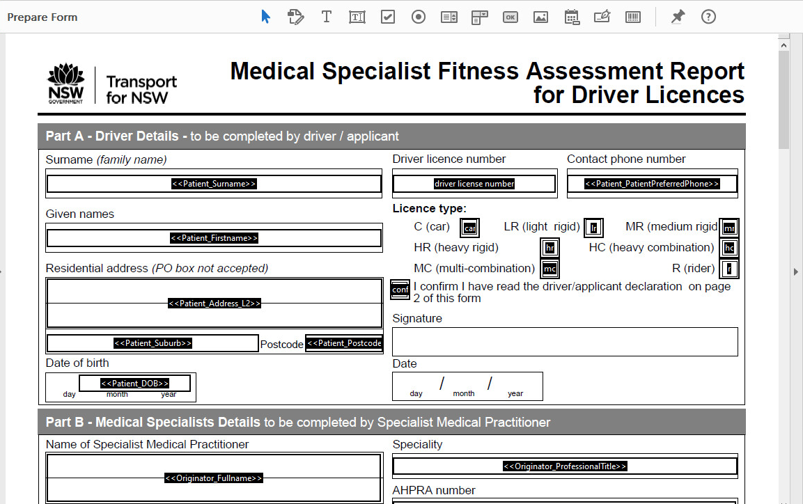 PDF forms often include fields that do not correspond to a HealthTrack tag. Those fields can be completed manually when the letter is created.