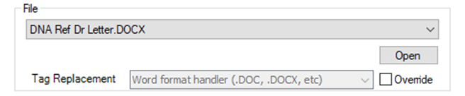 | Tag Replacement | The file type used for tag replacement (e.g. .doc, .docx). Tick Override to change the Word format handler. |