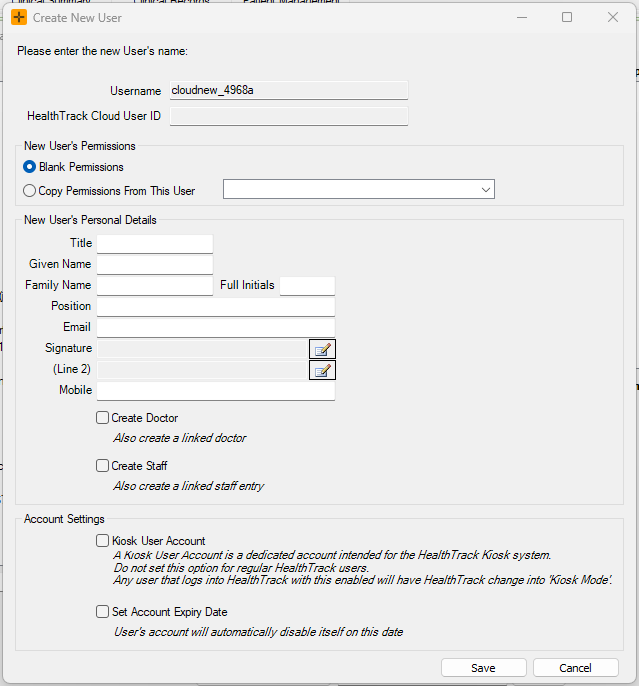 Create New Userat the bottom left of the screen.- The Username field will automatically populate - no changes are required.