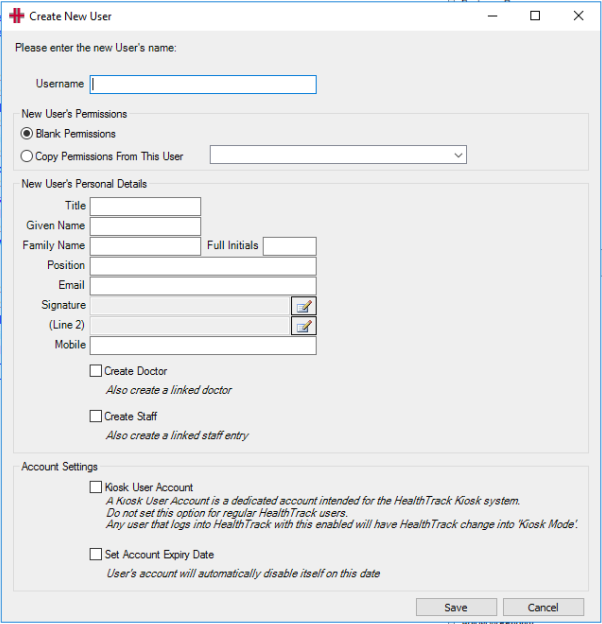 Creating a New User in HealthTrack