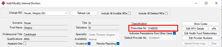 Edit Provider Numbersbutton to help capture all provider numbers for the doctor. - This will bring up the Add/Modify Doctor Provider Numbers screen.