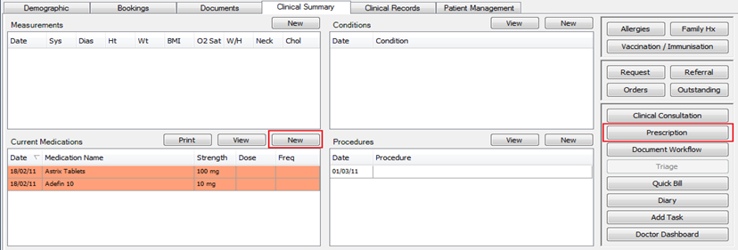 There are two ways to open the Medication Prescriber from the patient’s Clinical Summary tab: