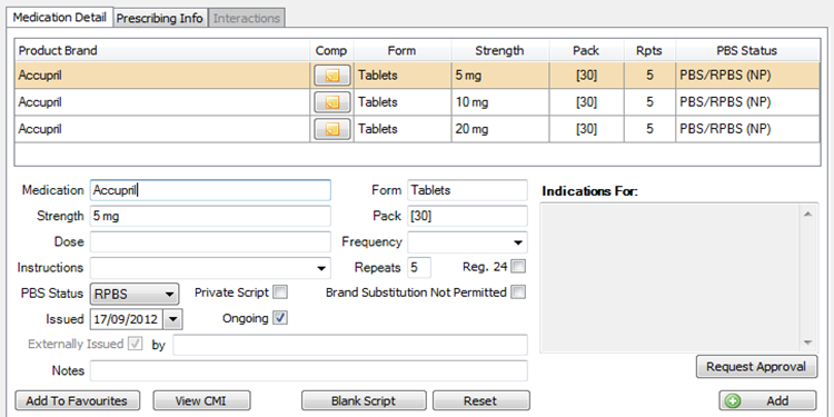 You can save frequently prescribed medications as favourites for quicker access. For instructions, review our How to set favourite medications article.