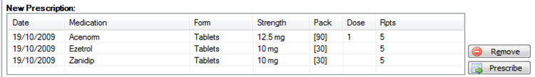 Prescribebutton to generate the prescription.