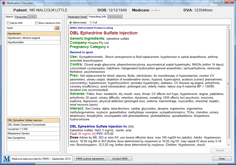 If your site has a MIMS subscription, you can view detailed prescribing information directly in the Medication Prescriber.
