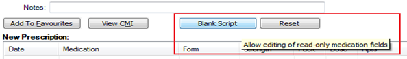 Blank Scriptbutton. This unlocks the medication fields so you can enter the details manually.