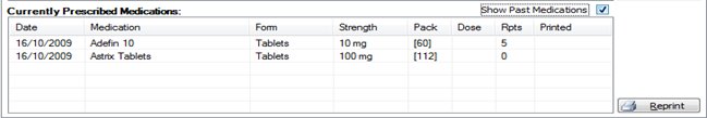 - To reprint a prescription, select the medication and click the