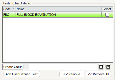 - Double-click the group name to add all its tests to the Tests to be Ordered section.