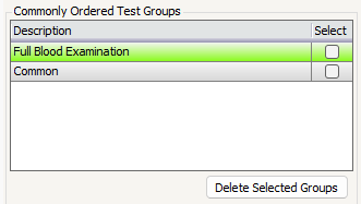 - Select the appropriate Commonly Ordered Test Group from the list.