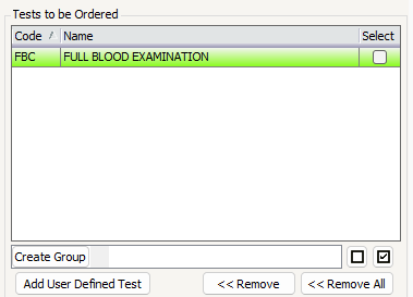 Requestbutton. - Add all the tests that you’d like in the group to the “Tests to be Ordered” section.