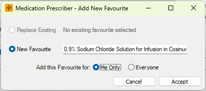When adding favourite medications, they can either be personal (me only) or for everyone to access.