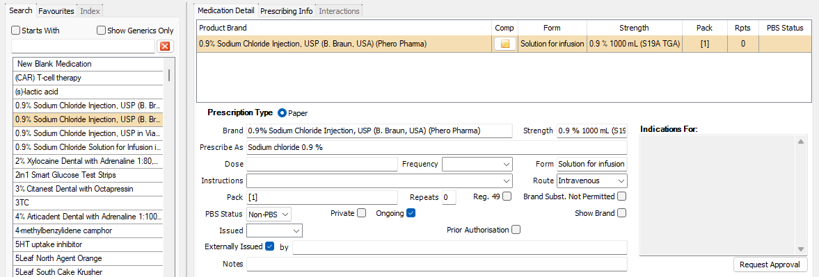 Be sure to enter all required details so that this information is automatically filled in whenever the favourite medication is selected in the future.