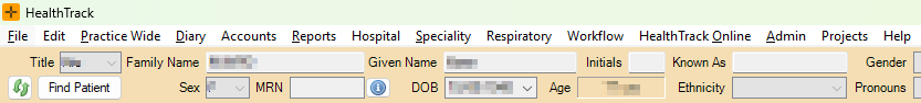F10/Alt    Highlights the top Healthtrack menu banner
