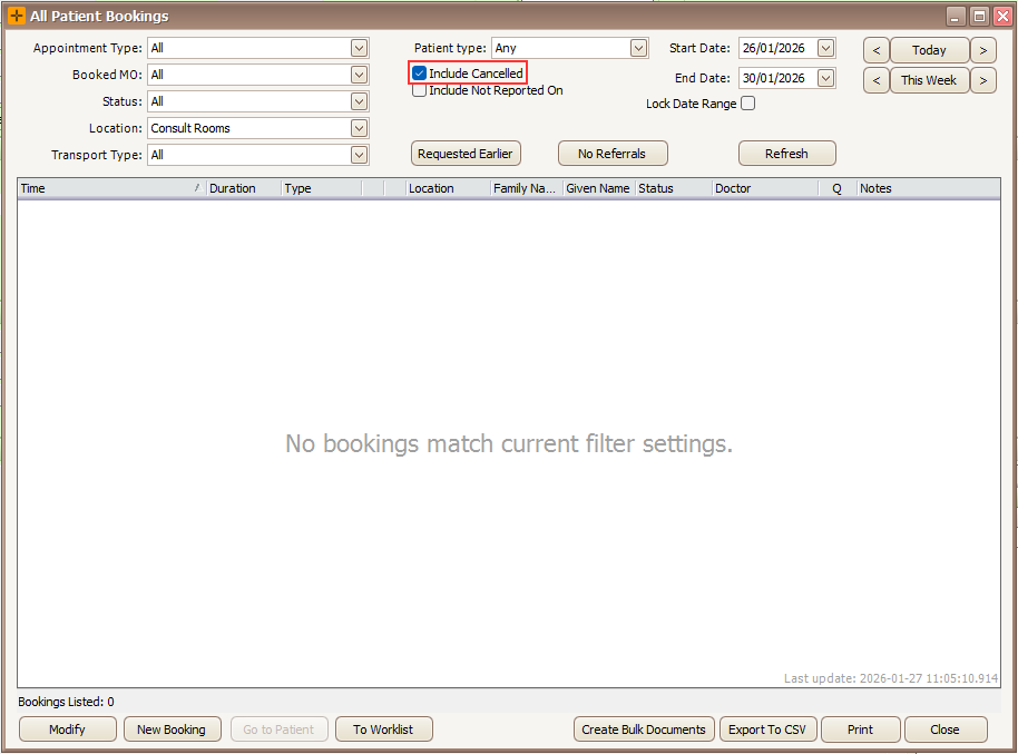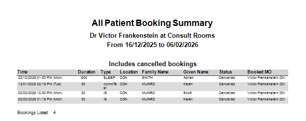 Selecting Print will provide a summary of all cancelled bookings as outlined below.