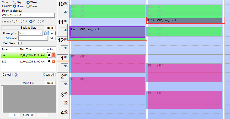 - Review the proposed bookings. Each row shows the booking type, date and time.
